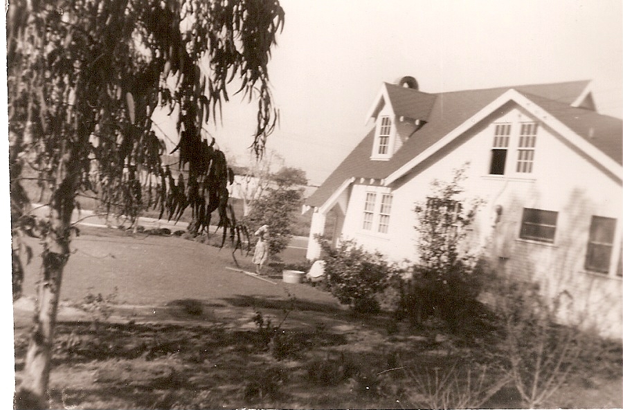 When Everett’s dad got the Maytag job, he rented a small cottage in Inglewood from a local Dentist. Two Bedroom and One Bath, Dining Room, Kitchen, and as Mother gloated, “a sunken Living room”  6″ lower than the adjoining hallway. The best part, as far as Everett was concerned was that the property included another lot to the east, vacant but landscaped with lawn, fruit trees, and space for a fort. There was a detached 1-1/2 car garage and a rear yard lined on the west with mature popular tress that managed to plug the sewer line every couple of years.  The lawn area on the adjacent lot was the neighborhood playground, acting as a football field, baseball diamond, and spear throwing area. (There was a stand of papyrus that offered plenty of spears. Mother hated that part)