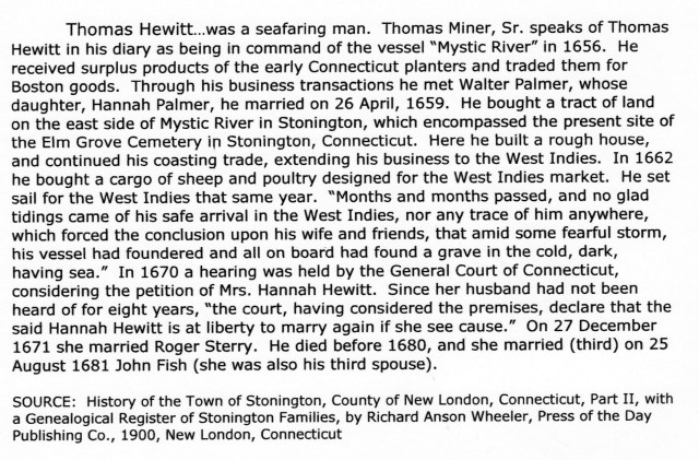 7. Hannah Palmer 15 Jun 1634 Charlestown, Mass Thomas Hewitt