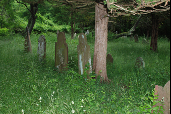 Clement Miner III Headstone — Headstone inscription not legible in June of 2009. Grave located using Charles Hale’s Collection of cemetery inscriptions for Bill Hill Cemetery (310-3) completed in 1934. Clement’s stone is located between that of John M Miner and Rev. Daniel Miner. In 1934 the inscription in memory of Clement Miner read: “Clemant Miner, died Aug. 9, 1775, age 73.” Today the Bill Hill Cemetery in Lyme, CT is largely overgrown and in disrepair.