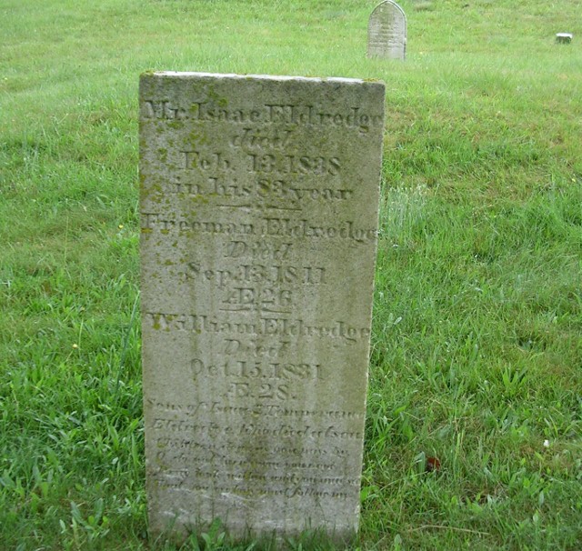 Isaac Eldridge Headstone Seaside Cemetery, Chatham, Barnstable, Mass. — Also includes sons Freeman Eldredge (1785 – 1811) and William Eldredge (1803 – 1831)