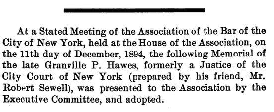Granville Parker Hawes Bio From: Association of the Bar of the City of New York Year Book – Twenty-fifth Annual Report 1895