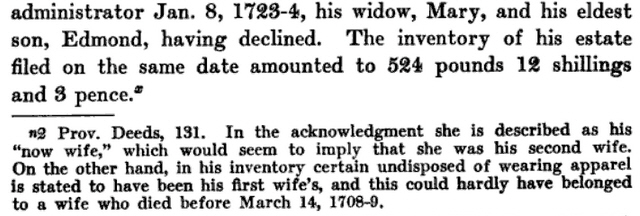 m2. 1738 to Susanna Pinckney of North Carolina.   Edmund and Susanna had one child Edmund (b. 1740)