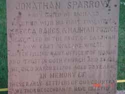 Capt. Jonathan Sparrow was born 26 Oct 1633 in Kent, England.  Hia parents were Richard SPARROW and Pandora [__?__]. He maried Rebecca BANGS 26 Oct 1654 in Eastham MA.  Our ancestor, Rebbeca Sparrow was his first daughter.  After Rebecca died, Jonathan  married Hannah Prence Mayo (widow of Nathaniel Mayo) on 5 Jul 1667 at Eastham MA. He married a third time to  Sarah Lewis Cobb (widow of James Cobb) on 23 Nov 1698.  Jonathan  died on 21 Mar 1706/07 at Eastham MA at age 73.