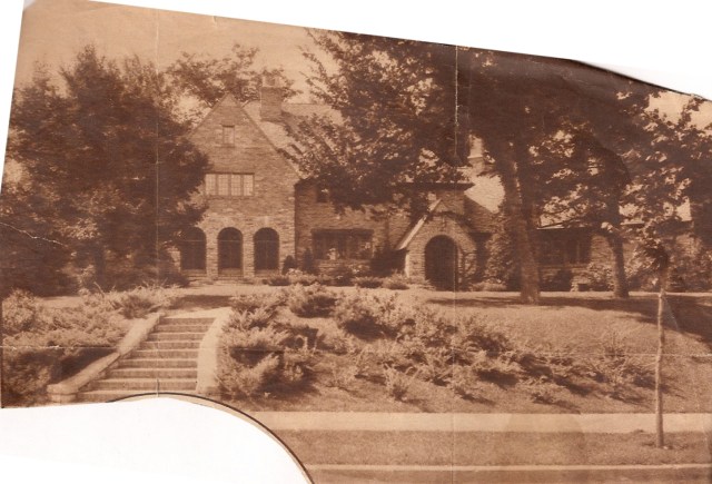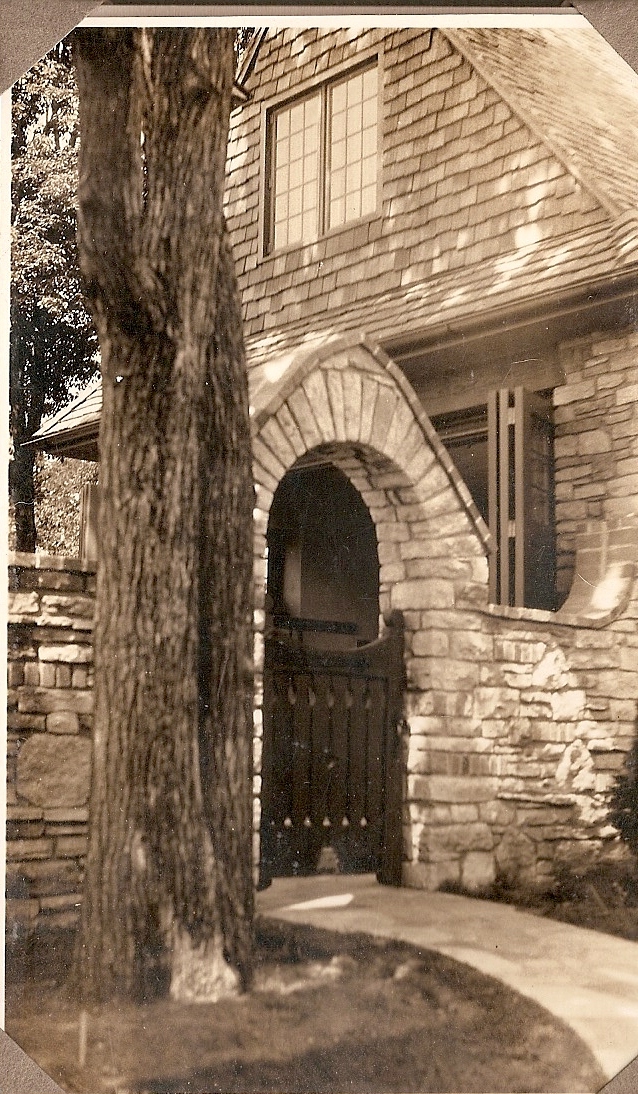 The right wing of the house contains a living room with a high vaulted ceiling. The left wing was the garage and the central portion is the main part of the house. Lower walls of the house are of local stone and for the upper walls split field stones and brick have been used. The roof is of English tile. Stone walks will lead to the entrance. The windows are all metal and of leaded glass. Oak trim will be used in the interior of the house. All plastering will be finished in the rought. A wrought iron stairway leads to the second floor of the house where there are five bedrooms and thre baths. In the basement is a recreation room. An elaborate landscaping scheme has been designed by Morell & Nichols. Construction work on the house is well advanced and will be completed after the first of the year.