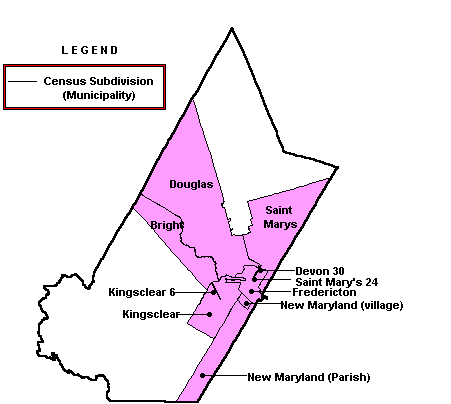 Municipalities of York County within the EI Economic Region of Fredericton–Moncton–Saint John (2000)