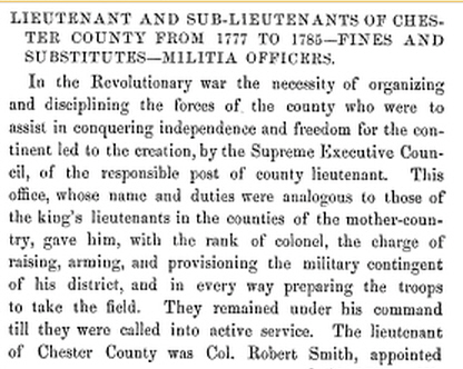 Sub- Lieutenant (Lieutenant Colonel), 3rd Battalion, Chester County, Pennsylvania Militia.