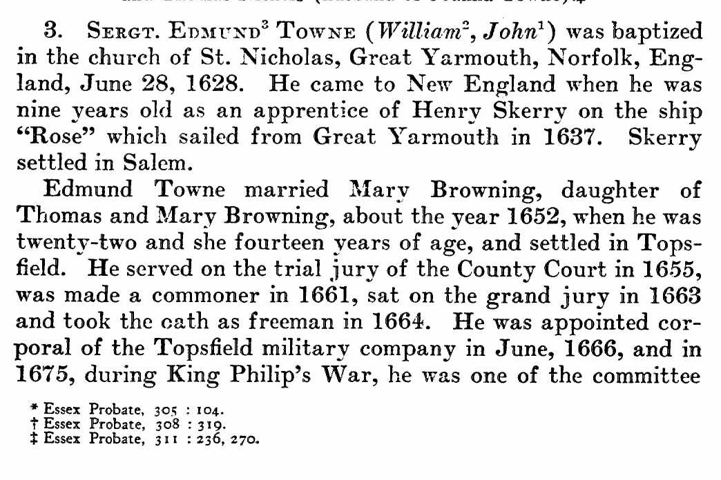 4. Edmund Towne 22 Jun 1628 Great Yarmouth Mary Browning 1652 before 3 May 1678