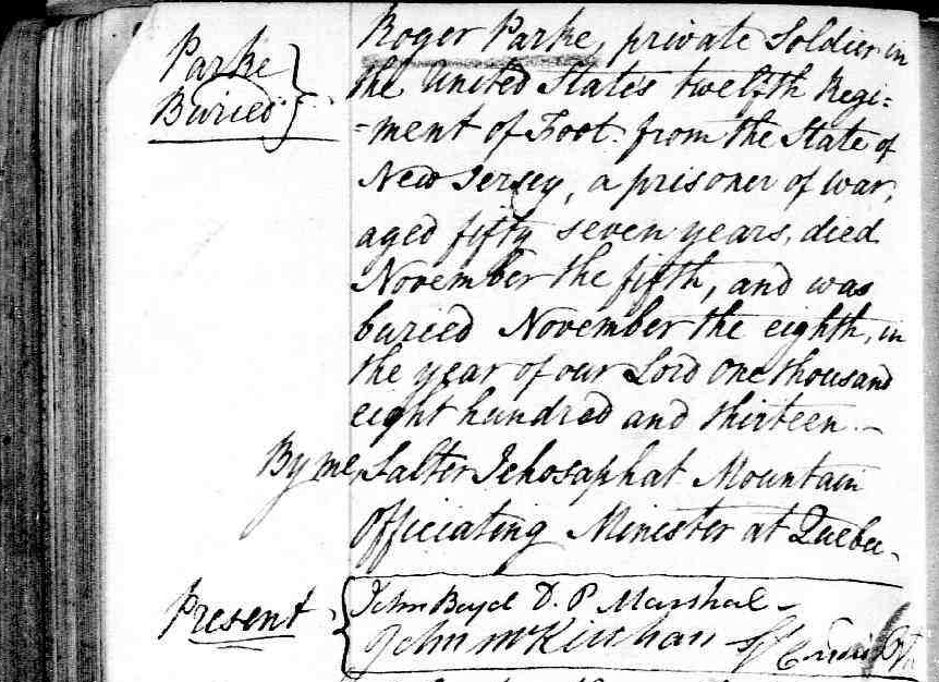 6 Nov 1813 Quebec City, Canada British POW Buried at Anglican Cathedral in Quebec City |