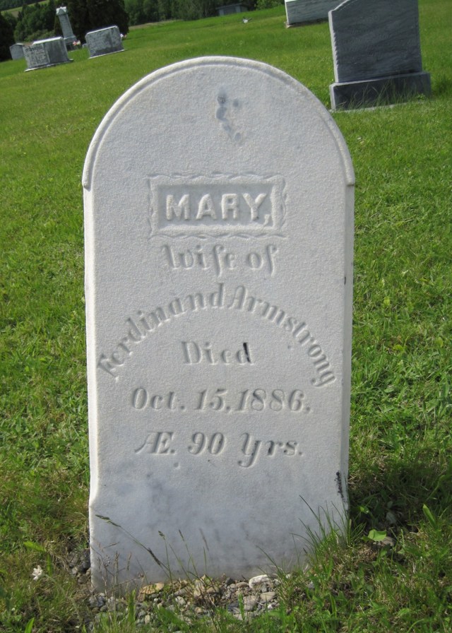 Mary’s husband Ferdinand Amesley Armstrong was born 1796 in Wilmot, Annapolis, Nova Scotia, Canada. His parents were Richard Armstrong and Catherine E Shafner. Ferdinand died 17 Jul 1860 in Ft Fairfield, Aroostook, Maine.