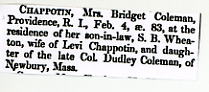 viii. Betsey Colman b. 26 Sep 1805 in Newbury, Essex, Mass; d. 26 Oct 1809