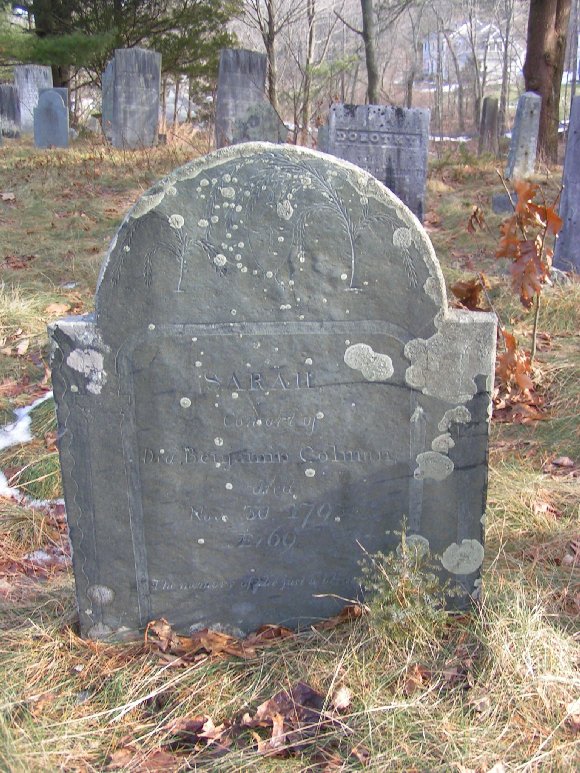 Sarah Stickney Colman Gravestone Byfield Cemetery Inscription: The memory of the just is Blessed