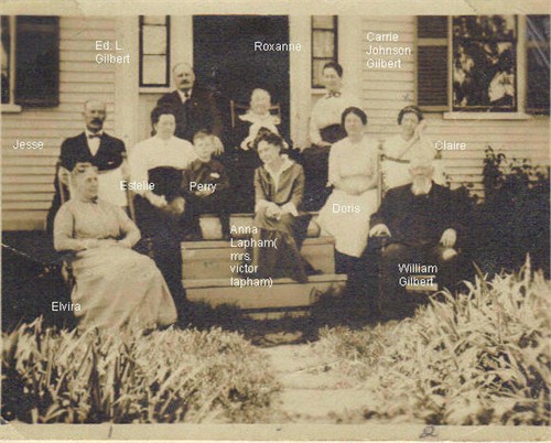 iii. Edward Leslie Gilbert b. 21 Jan 1868 in Anoka, Anoka, Minnesota; d. 24 Jan 1939 in Augusta, Kennebec, Maine); m. 2 Aug 1899 in Sidney, Kennebec, Maine to Carrie Viola Johnson (25 Sep 1857 in Augusta, Maine – 12 Dec 1946 in Augusta, Maine) Carrie’s parents were Lewis P. Johnson (1827 – ) and Lydia C. Norton (1831 – )