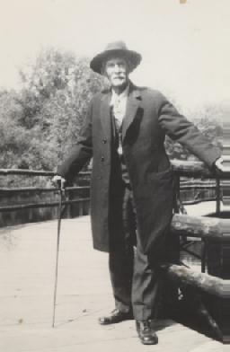 Seth R. Coleman, 87 years old, by bridge over Rum River, Anoka, MN 1934. Born in North Vassalboro, ME 1847. Youngest brother of Guilford D. Coleman,
