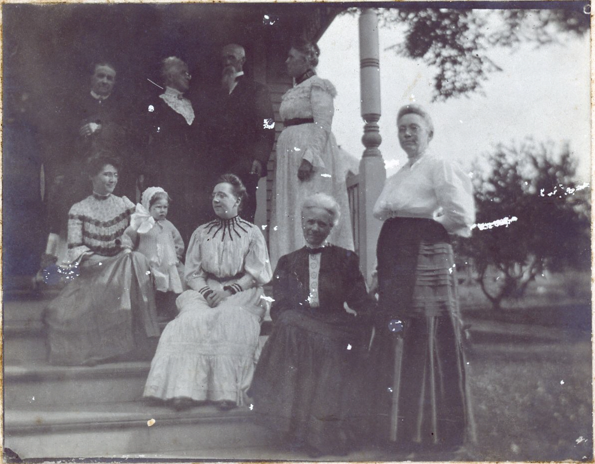 9. Seth Coleman standing, 4. Roxanna Coleman Lovejoy , 6.  Eliza Coleman, 8. Elvira Gilbert, on step Belle and Eleanor Lill Sholes, Emma Coleman and Etta