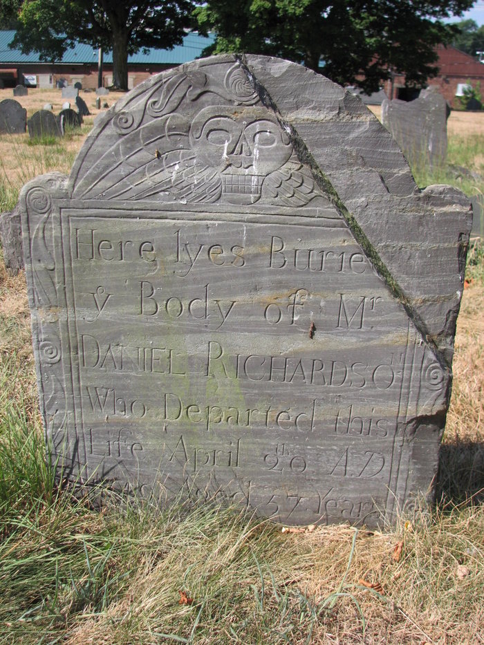 Stephen Richardson Headstone – Woburn First Burial Ground: “Here lyes the body of Mr. Stephen Richardson, aged about 67 years, died March ye 20th, 1717-18.