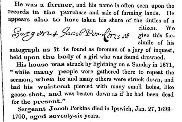 Ahh. Once again our ancestry’s cross! My paternal grandmother was a Perkins and is descended from the same family (John’s brother Issac is another of my 10th great grand fathers).