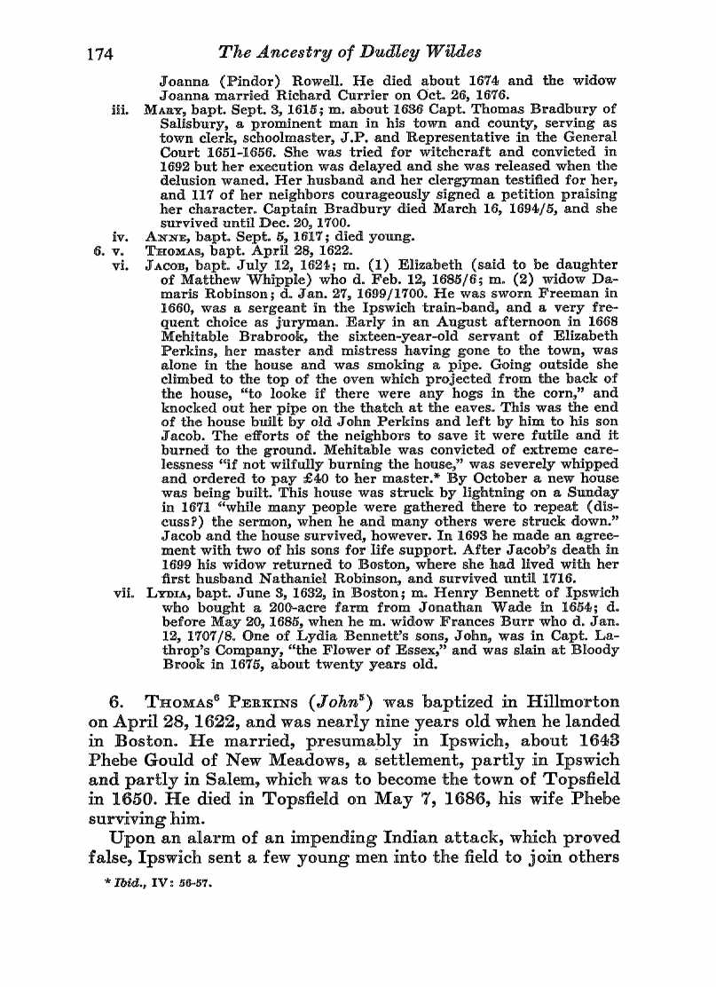 I am surprised that you don’t have more here about Mary Perkins, the wife of Thomas Bradbury. She was convicted of being a witch on 22 Sept 1692. Mary was the daughter of the above John Perkins and the first cousin on Rebecca Perkins and (I think) second cousin of Edward Perkins.