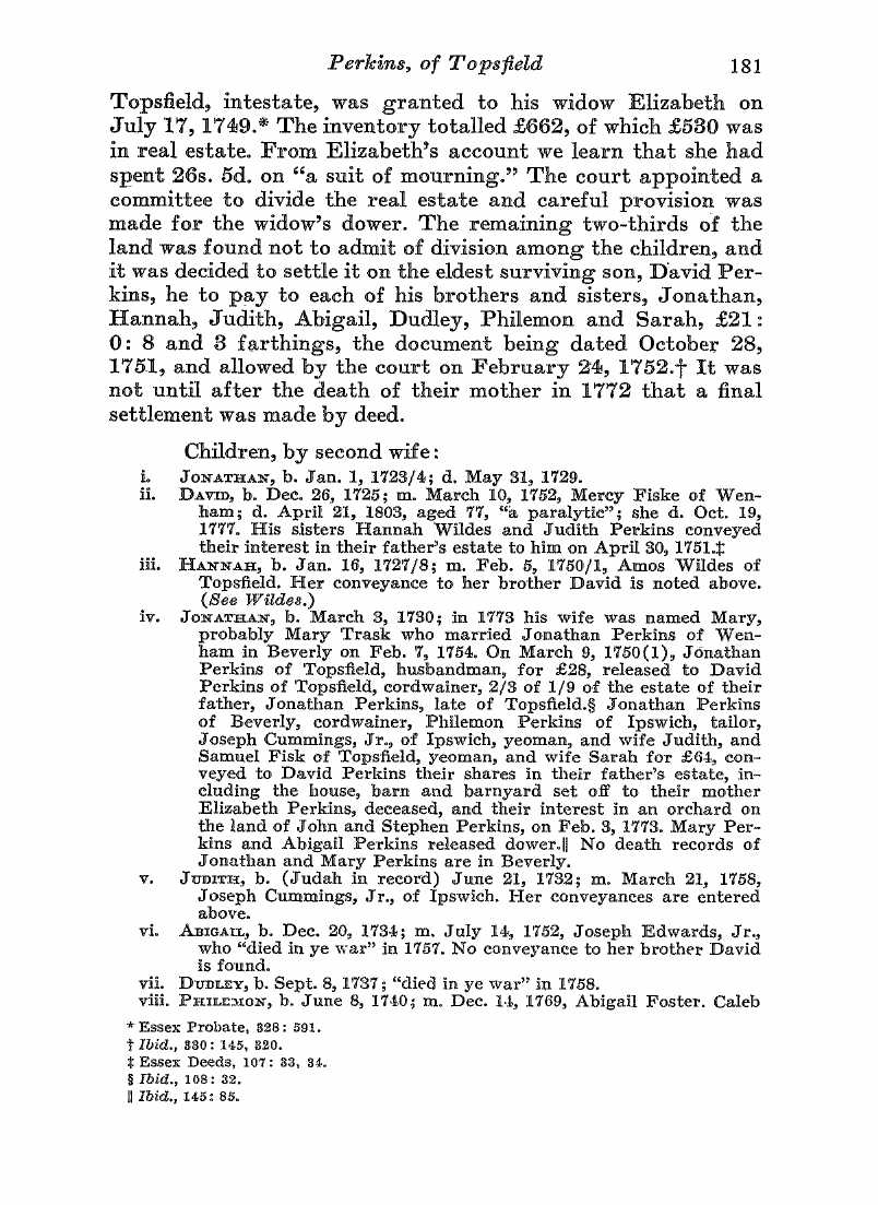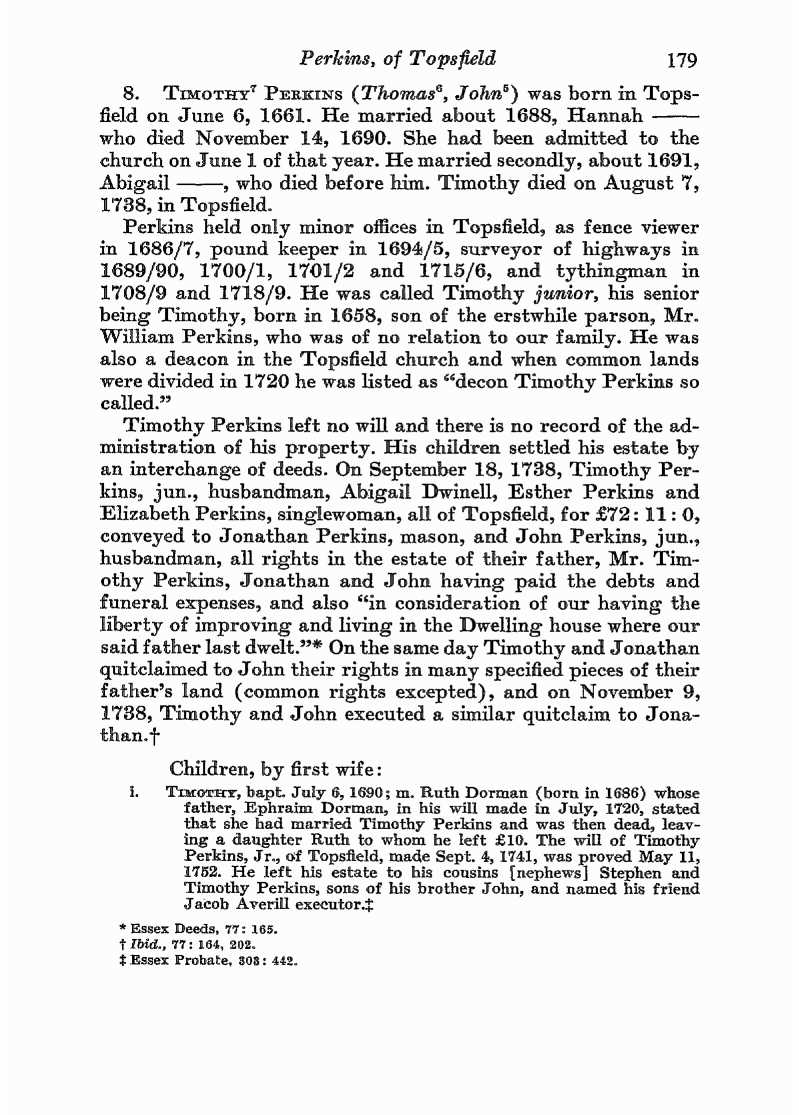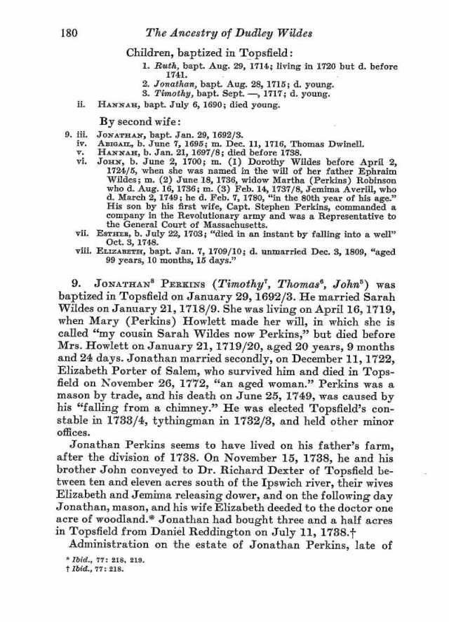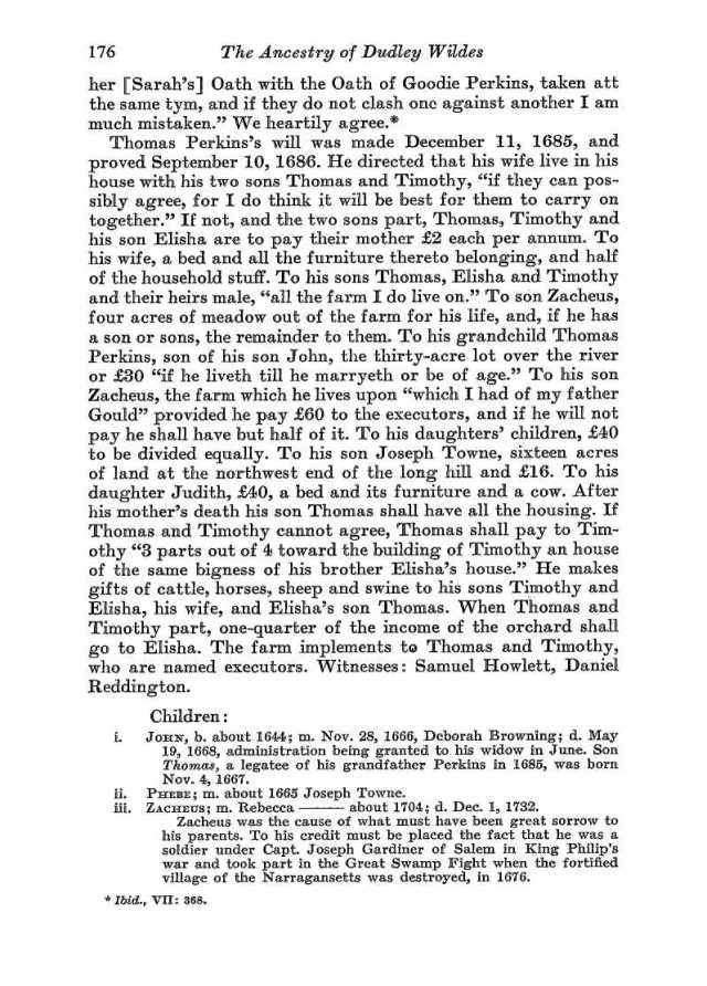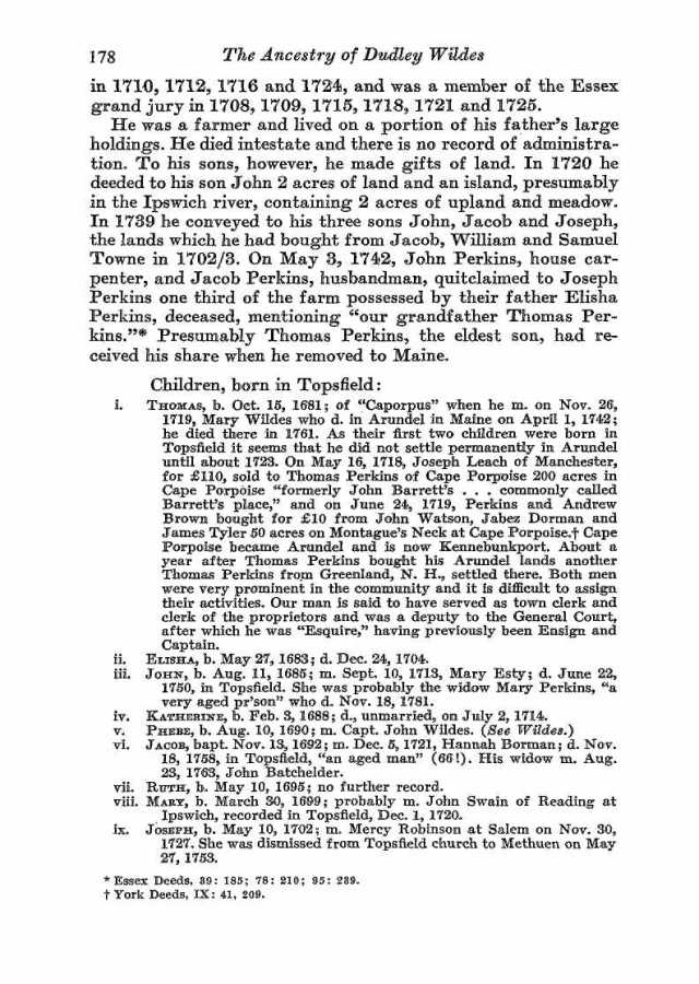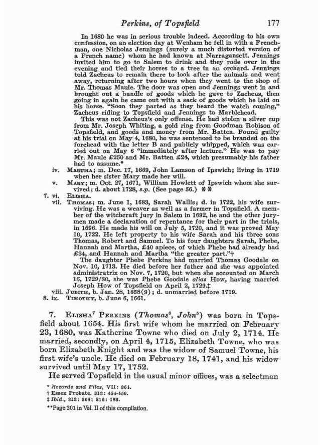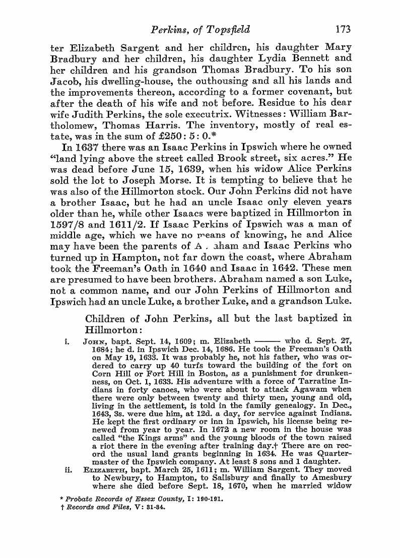 If this isn’t who you’re looking for and if you’re still looking, let me know. I also have an immigrant Perkins (Abraham 1608-1683) that settled in New Hampshire and I can go and see what I can find in his line. I haven’t done much research in it yet. FYI Abraham was one of the sons of issac Perkins, Sr that is discussed below.