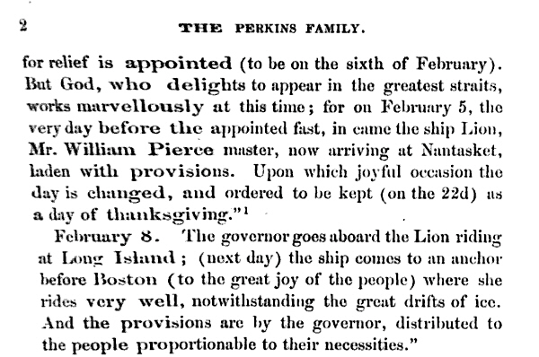 Voyage of the Lyon 1630 –  From The family of John Perkins of Ipswich, Mass: Complete in three parts By George Augustus Perkins