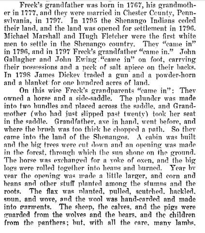 Freck wrote a book entitled “Reminiscences of Pioneer Life” published in 1912 by Franklin Hudson, Kansas City, MO.(no longer in print) The following is an excerpt from the book, page 162: