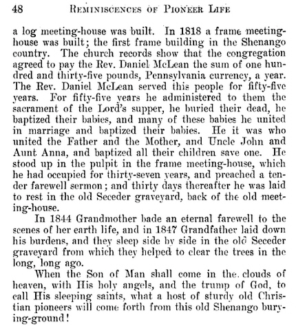 | 6. | Isabelle McConahey | c. 1810, South Shenango Twp, PA | William McKissick (John’s brother) | 22 May 1849 South Shenango Twp, PA |