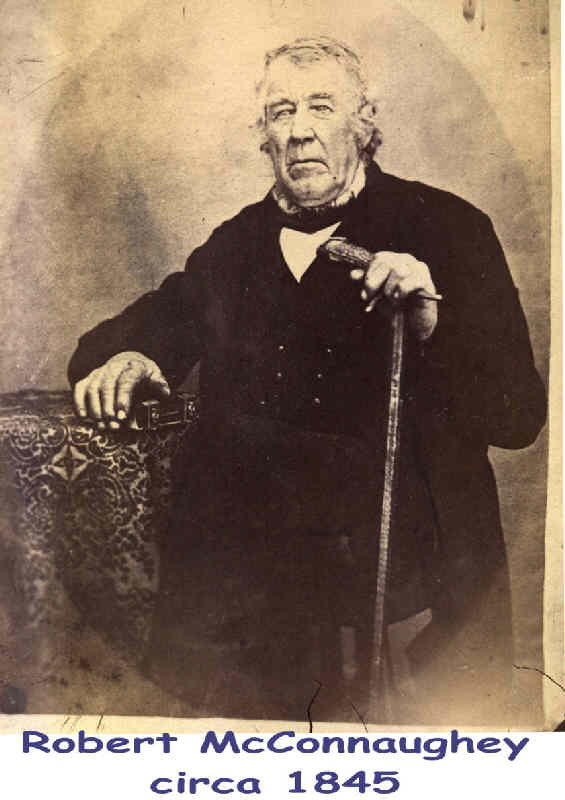 Robert McConahey was born 1767 in Convoy, County Donegal, Ireland. Robert went from Scotland to Ireland and from there came to the United States and lived for a period in Chester County near Philadelphia. It is said that he walked from Philadelphia to Crawford County near the town of Westford , PA and took up a tract of land. He returned to Chester County and married Margret STORY in 1797 and then returned to Crawford county to live permanently. Robert died 24 Oct 1847 or 24 Nov 1846 in South Shenango, Crawford, Pennsylvania.