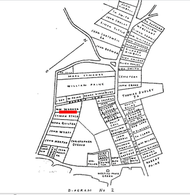 John and Priscilla’s children were Joseph Warner (1657), Mehitable Warner (1659), Daniel Warner (1661), Eleazar Warner (1662), and Priscilla Warner Cummings (married Thomas Cummings).