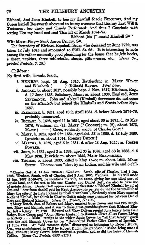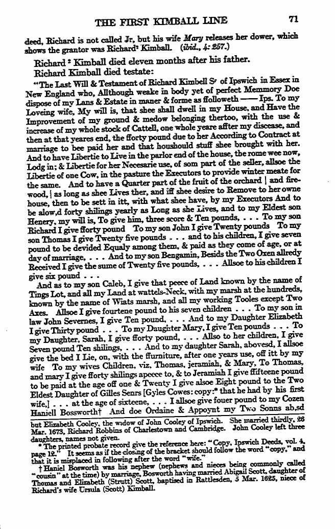 Richard Kimball, sr., of Ipswich made his will on March 5, 1674/5, and it was proved September 28, 1675.