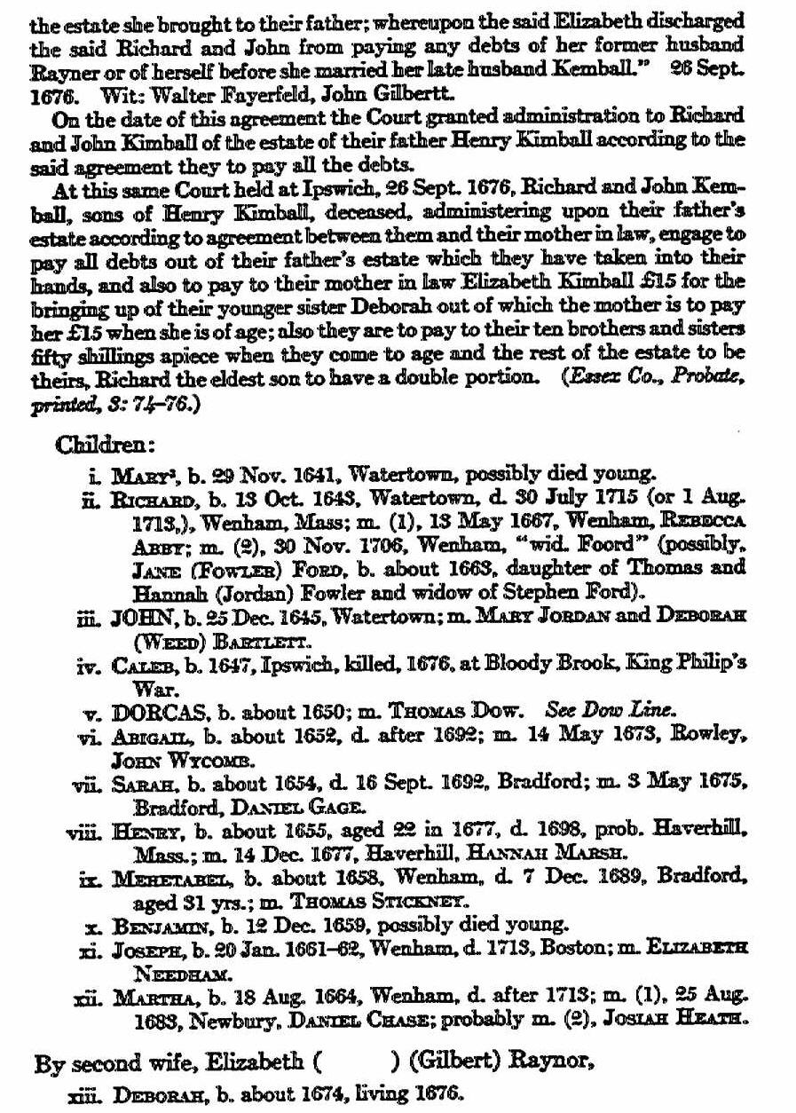 - Third she married about 1673 to Henry Kimball (b.1615 – d. 1676) When they married she owned a house and 12 acres of land valued at £40, which was her former husband’s.
