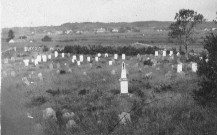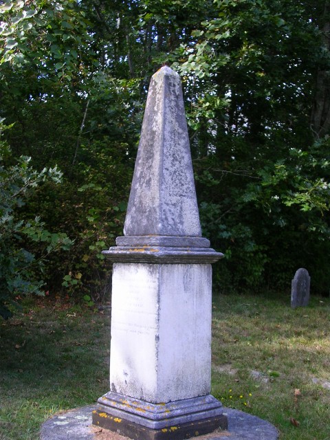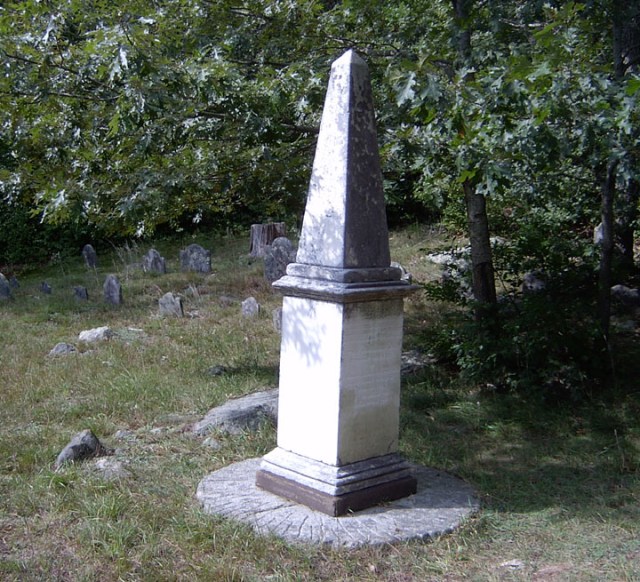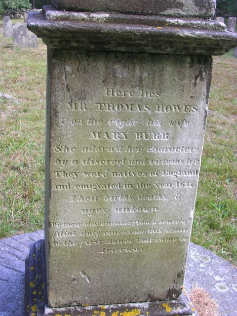 The pictured monument above was erected upon a millstone at the Howes Cemetery in 1834 to mark the resting place of Thomas and Mary (Burr) Howes.