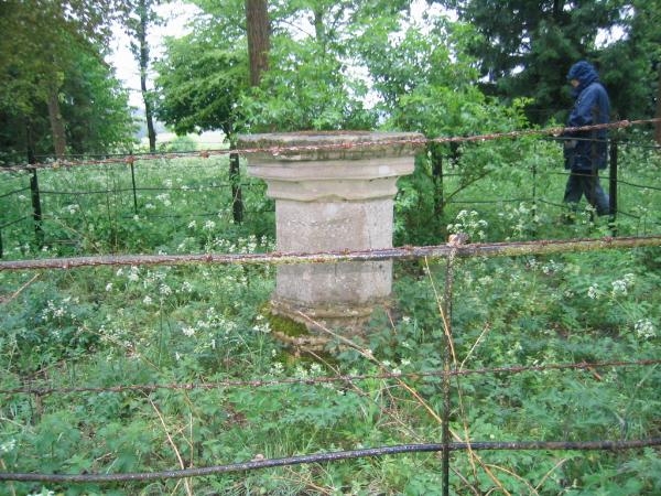 The lost village of Faxton, all that remains is the font and a few headstones. hidden away on farmland.