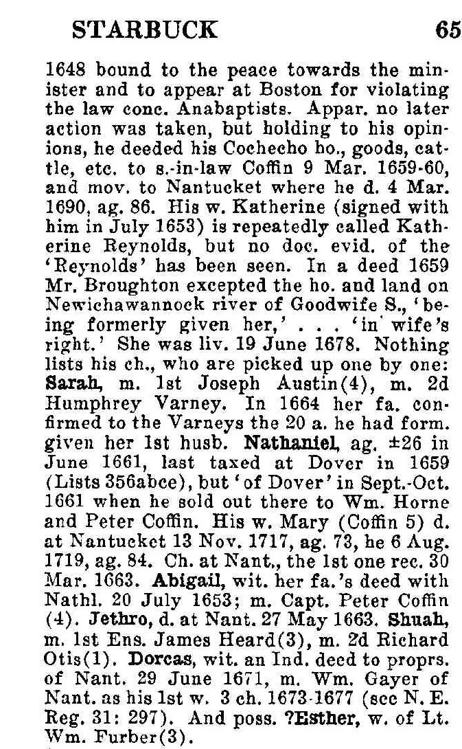 2. Nathaniel Starbuck 20 FEB 1633/34
