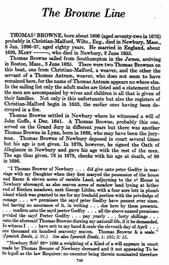 5. Thomas BROWNE (1607 Christian Malford, Wiltshire – 1687 Newbury, Mass.)