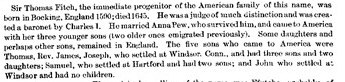 • From a line of 3 generations, each bearing the same surname, descended Thomas Fitch, Gov. of the Colony., 1754-60.
