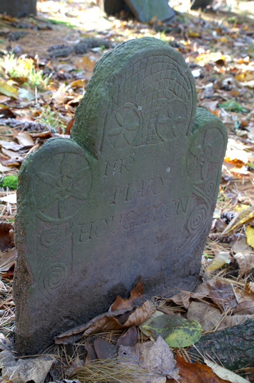 John’s  gravestone has the oldest engraved deathdate in the cemetery. (Source: Anna Burr and Thomas Gage, “Some Descendants of John Houghton of Lancaster, Massachusetts”, NEHG Register, Oct. 1925, pp. 392-400.)