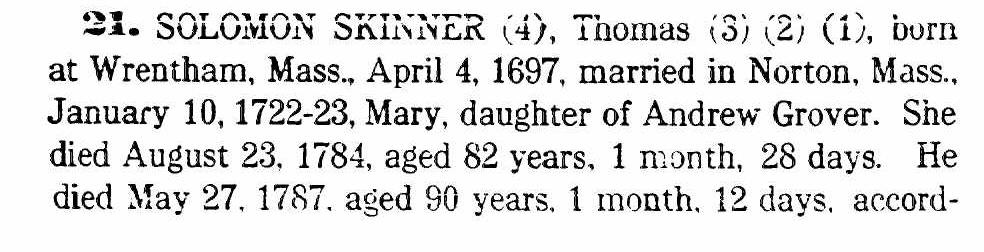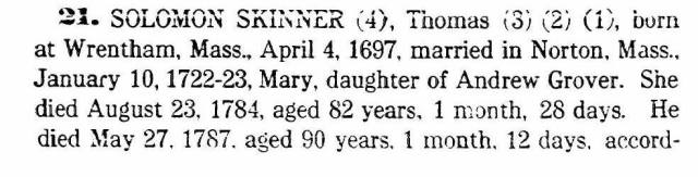 | 2. | Solomon Skinner | 4 APR 1697 Wrentham | Mary Grover10 Jan 1722/23
