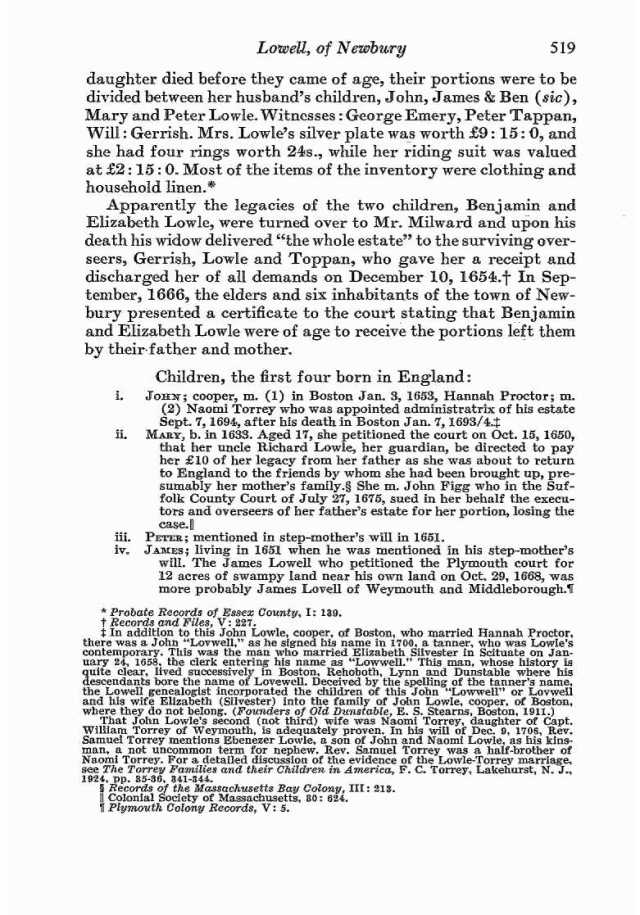 (D. R. Lowell. 1899. The Historic Genealogy of the L owells of America from 1639-1899)