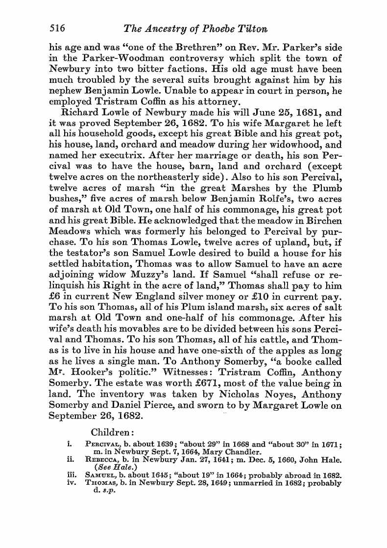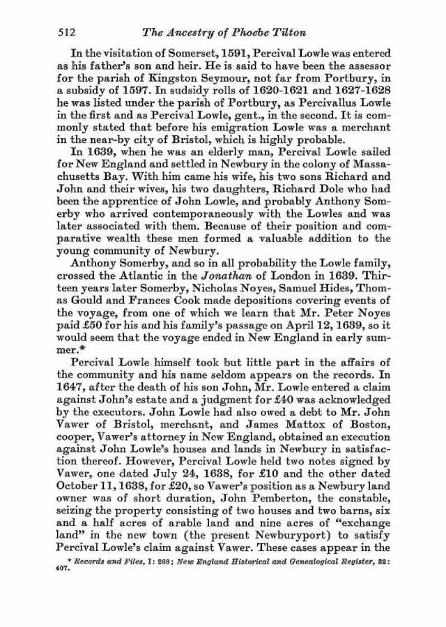 1642 – Newbury, MA was organized 1642 with 90 proprietors, of whom were Percival and John Lowle.