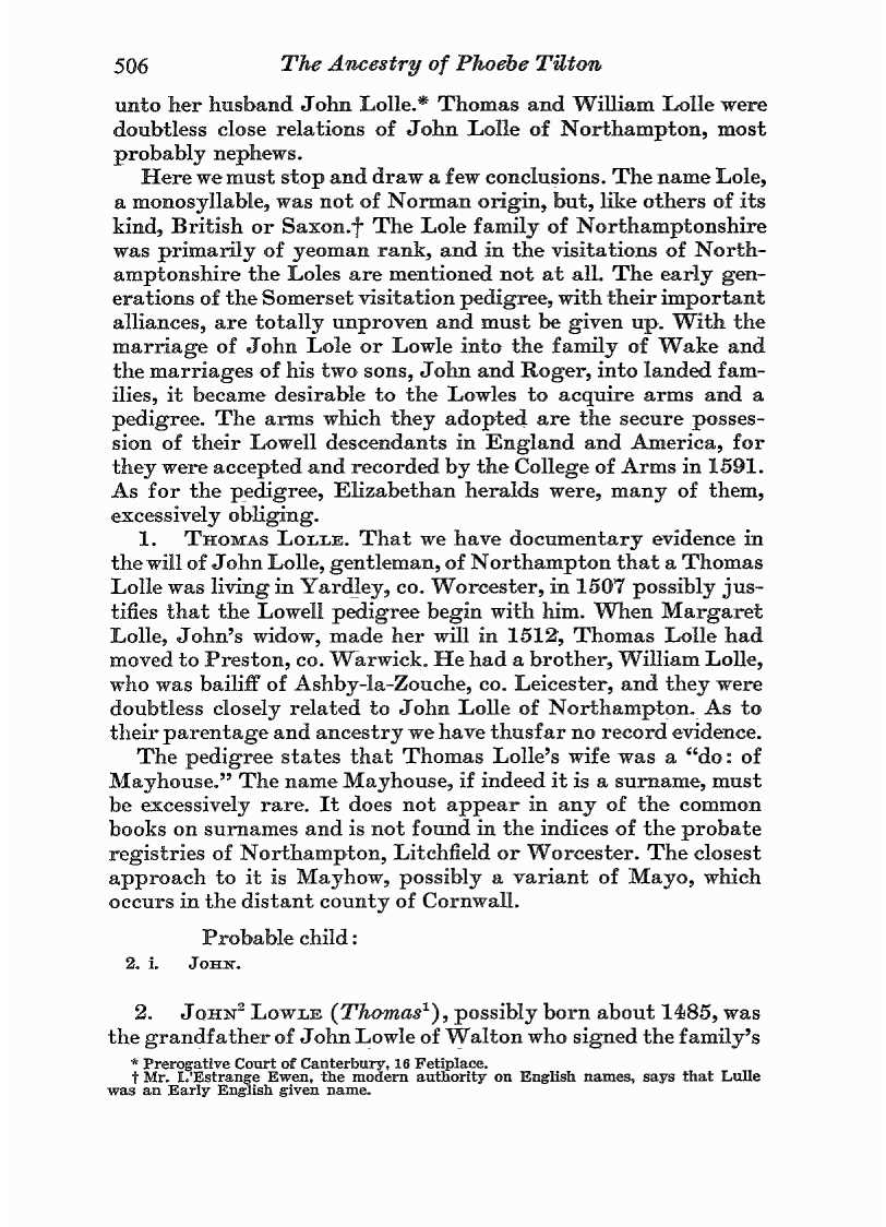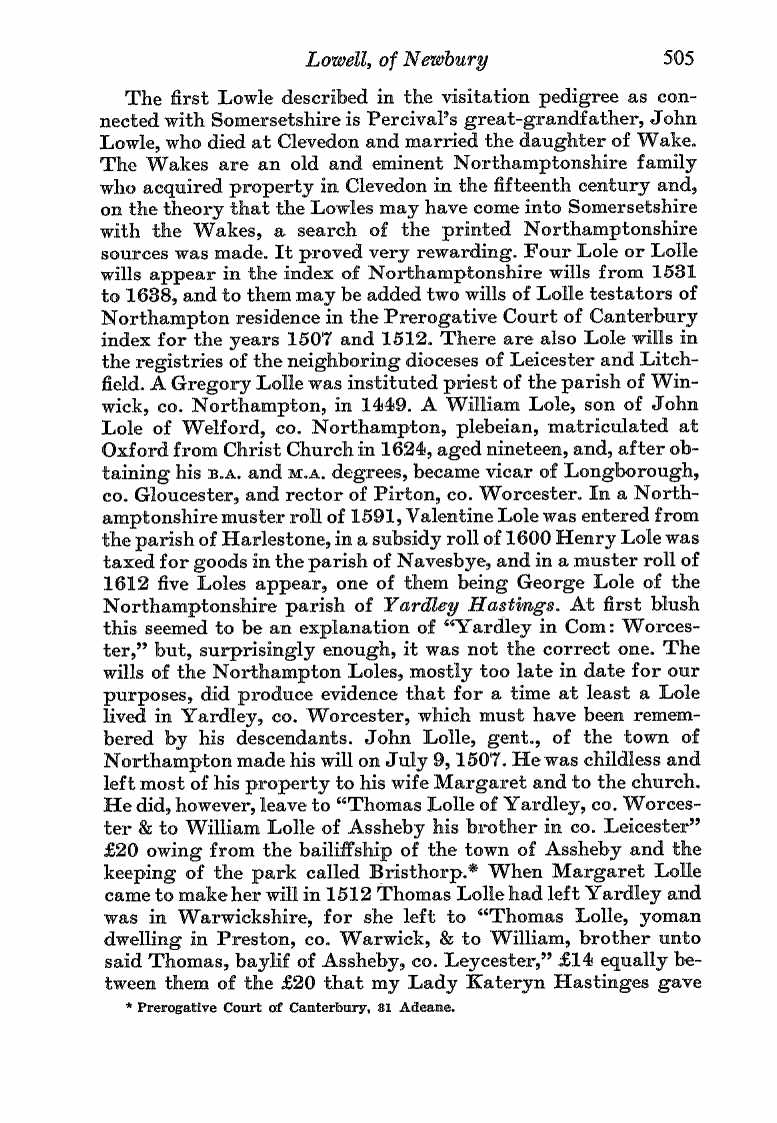b.abt.1460 Yardley, Worcestershire, England; s/o Walter Lowle and Joane Russel