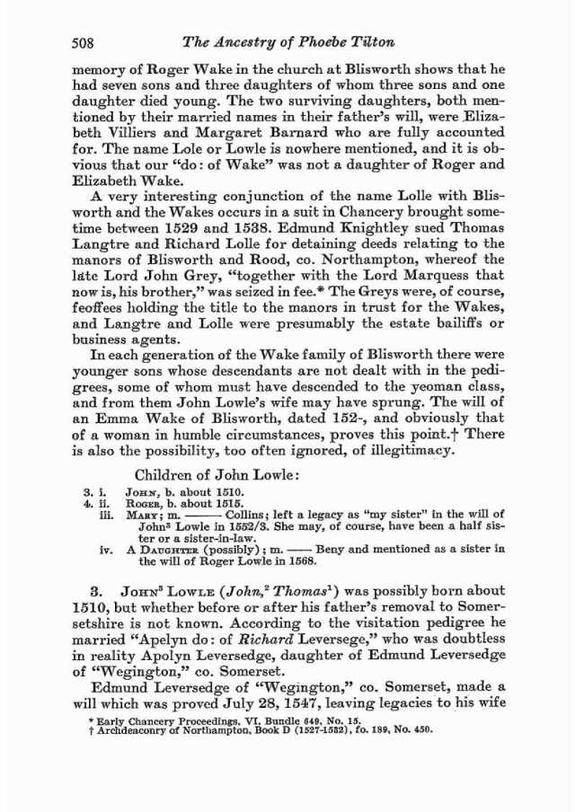 3. Mary m. [__?__] Collins; she left a legacy as “my sister” in the will of John Lowle in 1552/53.  She may of course been a half-sister or a sister-in-law.