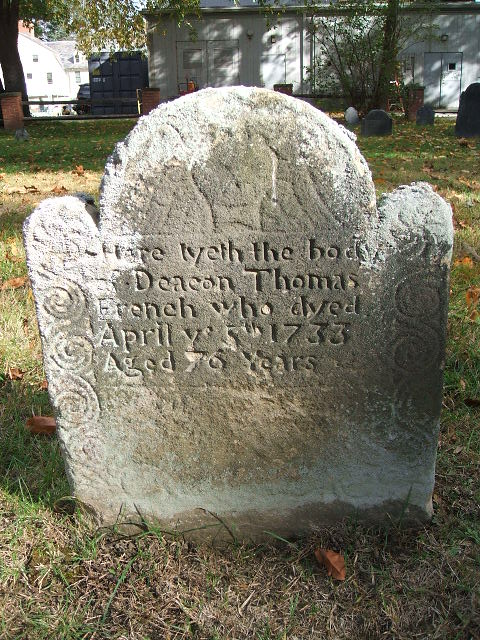 Deacon Thomas French Gravestone — Old Deerfield Burying Ground , Deerfield, Franklin County, Mass.
