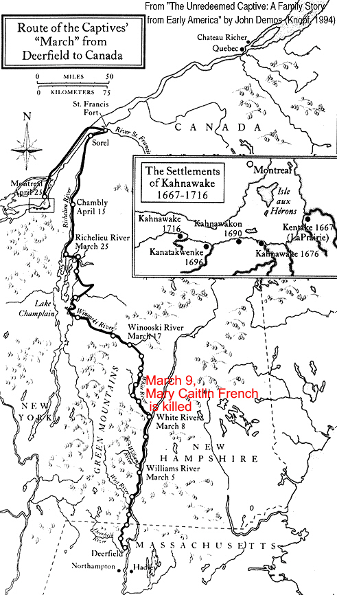 Deerfield Raid Map. Mary Caitlin French was killed about halfway through the journey