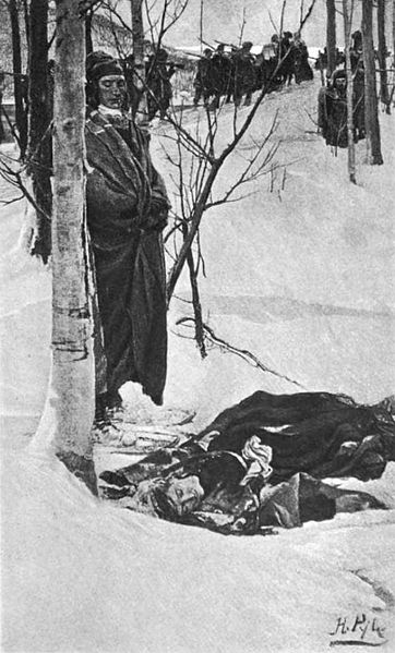 For the 109 English captives, the raid was only the beginning of their troubles. The raiders still had to return to Canada, a 300 miles  journey, in the middle of winter. Many of the captives were ill-prepared for this, and the raiders were themselves short on provisions. The raiders consequently engaged in a brutal yet common practice: captives were slain when it was clear they would be unable to keep up. Only 89 of the captives survived the ordeal; most of those who either died of exposure or were slain en route were women and children. Thomas’ wife Mary Caitin French was killed on the trip on 9 March 1703/04.