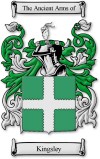 “John Kingsley of Dorchester, Mass., born at Hampshire, Eng., emigrated from there to Taunton, Mass., where he was one of the original purchasers. Removed to Dorchester 1635. His ancestors spelled the name Kyngesley and bore these arms: Vert, a cross engrailed ermine, crest in ducal coronet gules a goats head argent. Descended from Randuphus de Kyngesleigh of Chester 1120.”