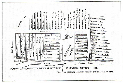 Plan of Plots First Settlers of Newbury – Edward Woodman’s lot is Nbr. 22