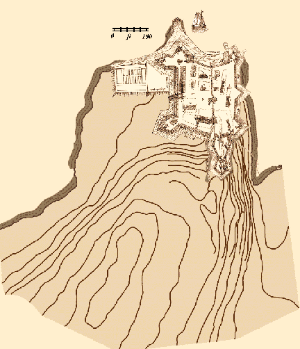 Overlay of the Hunt Map on an 1865 topographic map of Sabino Head (Brain 2001)   The stone spit of Sabino Head stretches out into Atkins Bay.