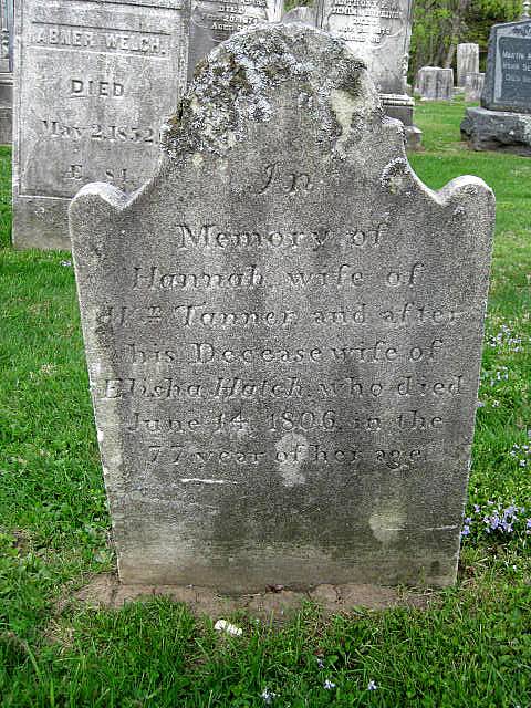 Hannah Newcomb Tanner Warren Center Cemetery Old Warren, Litchfield, Connecticut In memory of Hannah wife of Wm Tanner and after his deceased wife of Elisha Hatch who died 6/14/1806 in the 77 yr of age