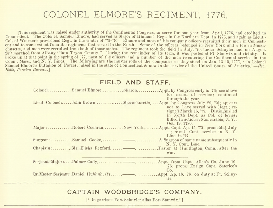 Revolutionary War – 2nd Lt. Adj., Militia, Capt. Woodbridge’s Co., CT Line  Colonel Samuel Elmore’s Regiment
