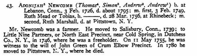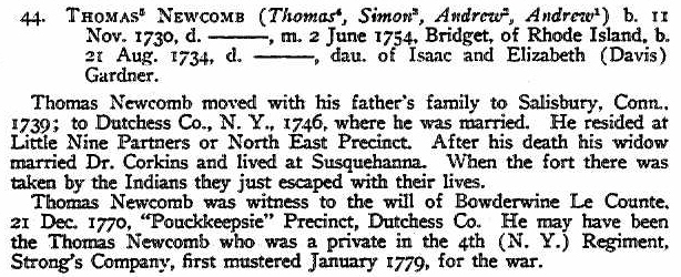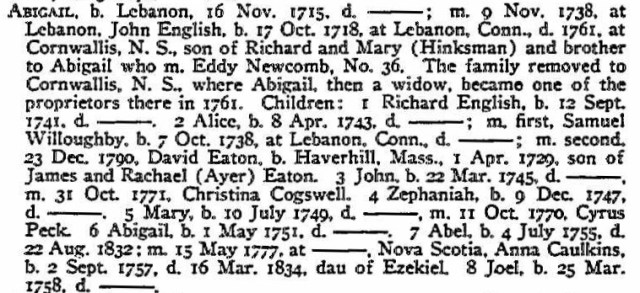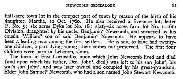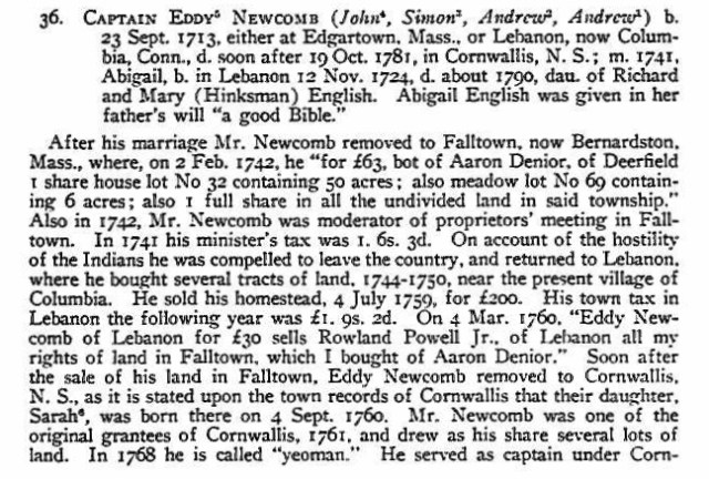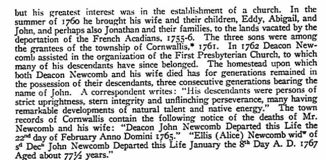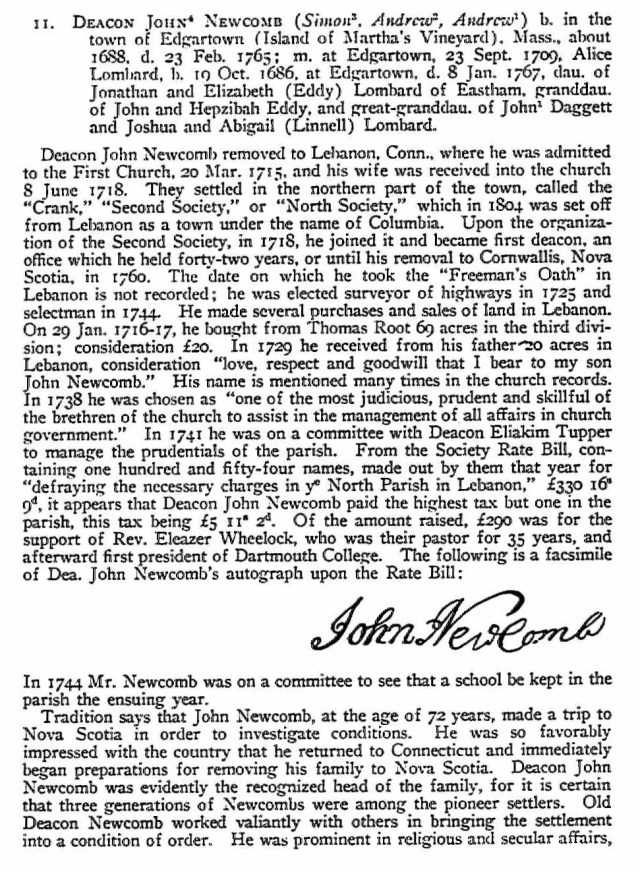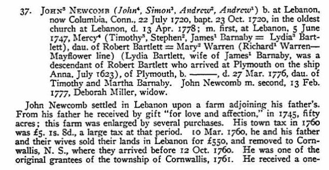 7. Benjamin NEWCOMB immigratged to Cornwallis, Nova Scotia in 1760. (See his page)
