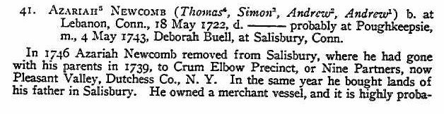 | 7. | Benjamin NEWCOMB | c. 1700 Edgartown, Martha’s Vineyard, Mass. | Hannah CLARK 1727 Canaan, CT |